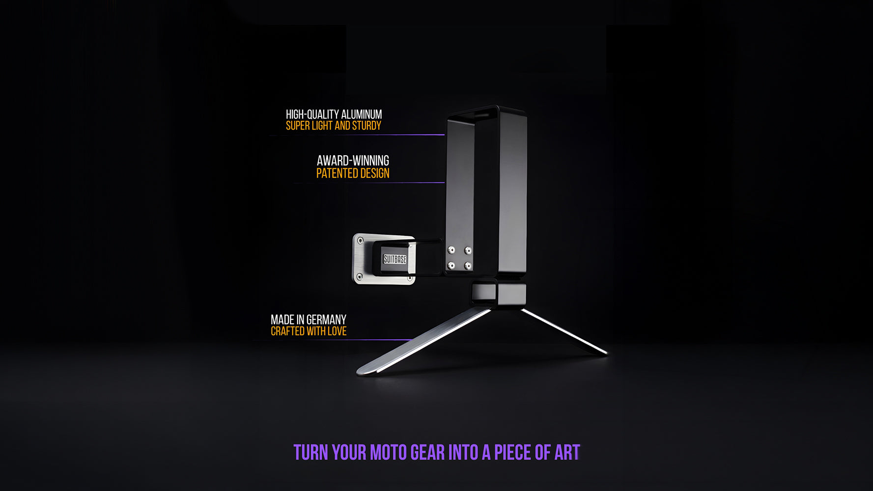 Seit 2016 räumt SUITBASE® die Motorradszene auf! Anfangs für mich selbst entworfen, konnte ich durch das Feedback von Maßkombi- und Helmherstellern eine Halterung entwickeln, welche perfekt auf die Bedürfnisse von uns Motorradfahrern abgestimmt ist. Eine funktionale Garderobe, die ohne Equipment ein Designobjekt fungiert und bei Verwendung den Fokus auf die Ausrüstung lenkt, vereint mit vergleichsloser Material- und Verarbeitungsqualität.