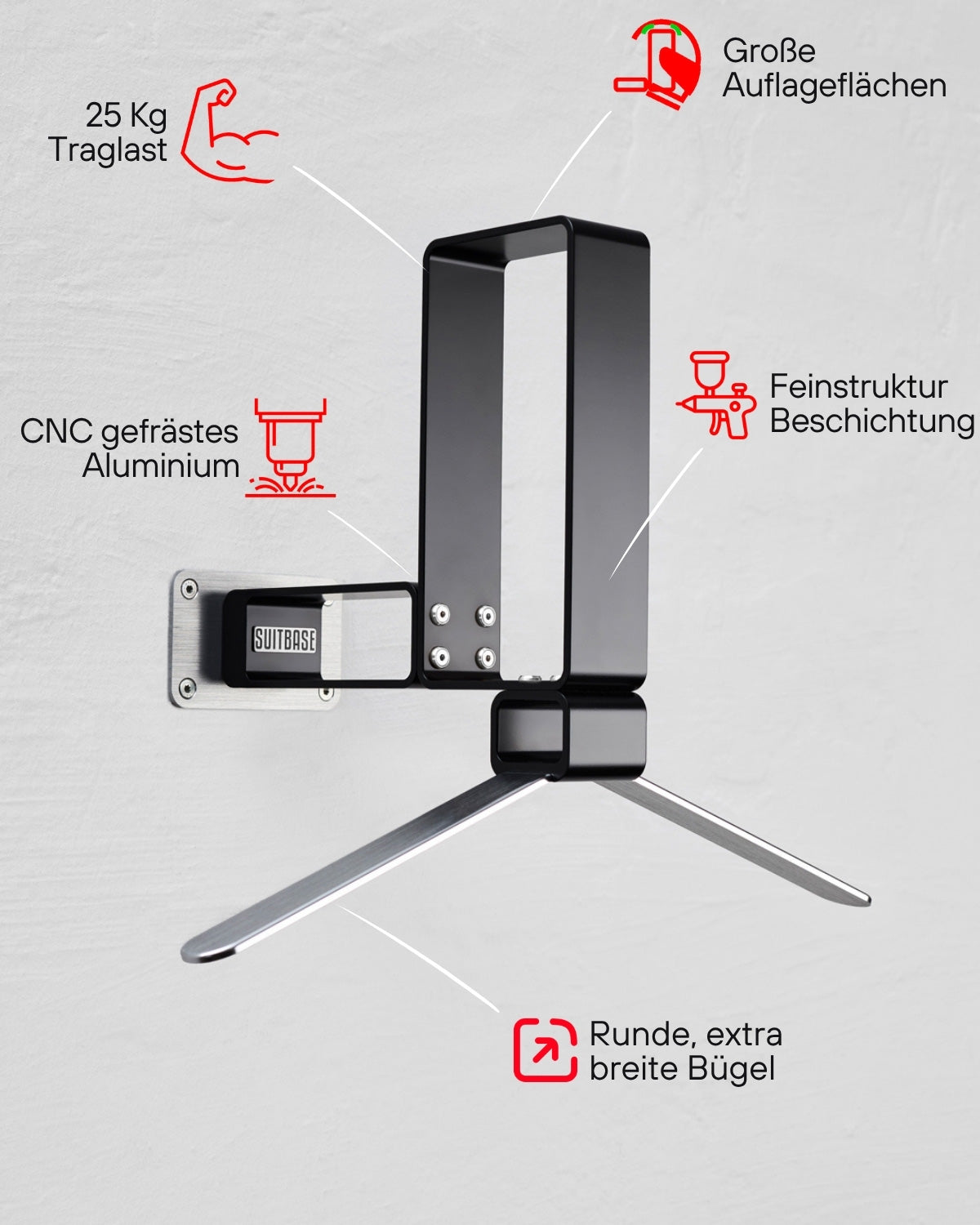 SUITBASE® ist nicht irgendein "Dropshipping-Müll". Die Design-Halterung wurde speziell für Motorradbekleidung konzipiert. Jedes Maß wurde genau abgestimmt, damit die Ausrüstung bestmöglich zur Geltung kommt und optimal präsentiert und schonend gelagert wird.