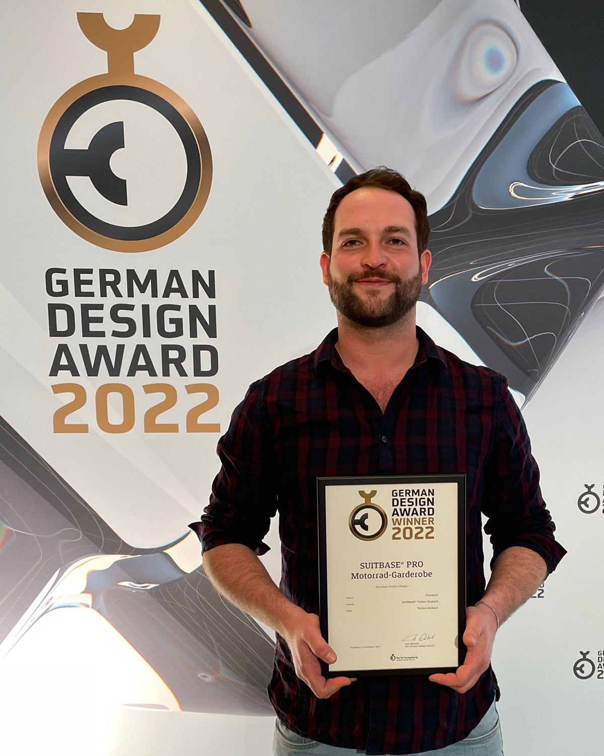 Mooin! Ich bin Torben, Designer deiner zukünftigen Garderobe und 2016 begann meine ganze persönliche Reise mit SUITBASE®. Nachdem ich kurz vorher die Leidenschaft für das Motorradfahren entdeckt hatte, war ich auf der Suche nach einer Wandhalterung, mit der ich meine neue teure Kombi stilgerecht aufbewahren konnte. Aber es gab zu meiner Verwunderung (außer dem "Louis Korb") de facto nichts auf dem Markt. Also fing ich an, meine eigene Halterung zu entwerfen. Qualitätsbewusst wie ich nun mal bin, sollte sie möglichst hochwertig, stilvoll, aber auch praktisch sein – und platzsparend, weil ich zu dem Zeitpunkt durch meine gerade begonnene Techniker-Weiterbildung in eine 16 qm Bude ziehen musste und der Sessel als Garderobe diente. Nach etlichen Prototypen und intensiver Marktrecherche fasste ich den Entschluss: Ich brach den Techniker ab, nahm einen Kredit, ließ das Produkt schützen und ging All-In. Inzwischen beliefere ich Kunden wie Louis, habe 1000PS als Partner und ich kann mit Stolz sagen, dass über 10.000 Haushalte – über den ganzen Globus verteilt – täglich meine Halterung nutzen. Und hier sitzt du nun, 9 Jahre später, und liest dir die Gründerstory durch. Also: Wenn du auf der Suche nach der wohl besten Motorrad-Garderobe bist, kann ich dir die SUITBASE® PRO V4 ans Herz legen. Bei einer Retourenquote von unter 1 % – ich bin sicher, du wirst begeistert sein! 🤗